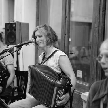 Une accordéoniste professionnelle est là pour mener la danse,